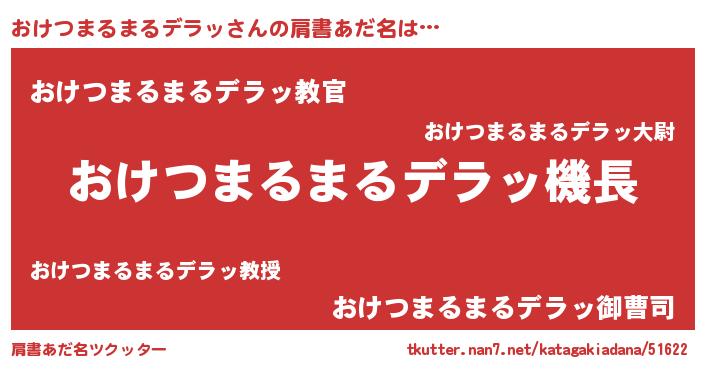 | 意味不明あだ名 | 『住所不定無職おけつまるまるデラッ(81歳)』 |