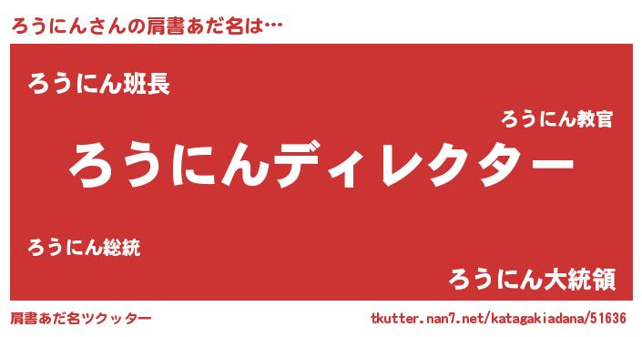 | ポケモン風あだ名 | 『ロウゴンZ』『ヒロウニン』 |