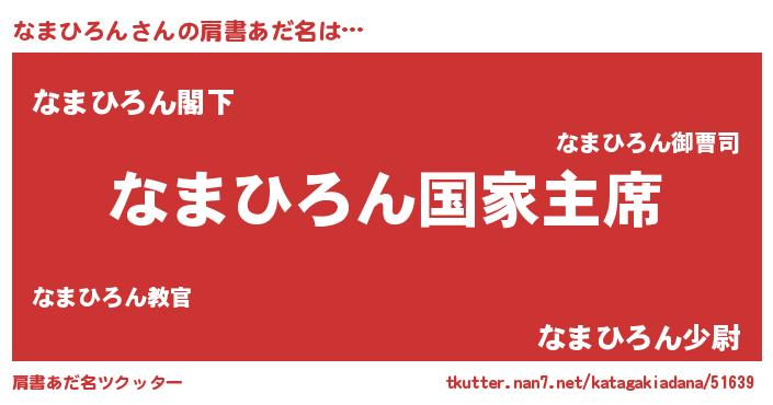 | ヒーロー風カッコイイあだ名 | 『ウルトラなまひろんマン』 |