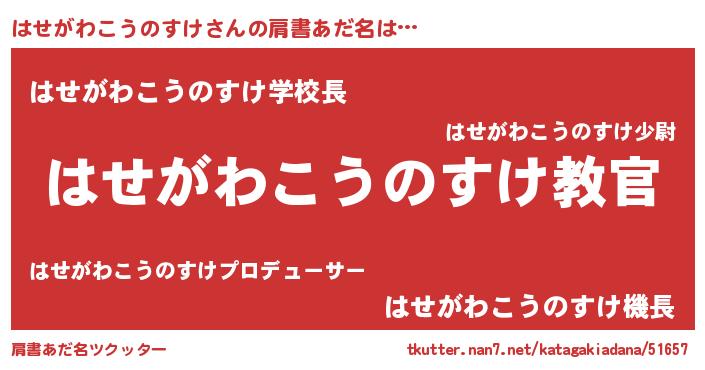 | 意味不明あだ名 | 『住所不定無職はせがわこうのすけ(10歳)』 |