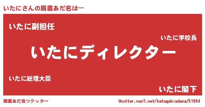 | 男性向けラノベタイトル風あだ名 | 『いたにに滅ぼされるだけの簡単なお仕事です』 |