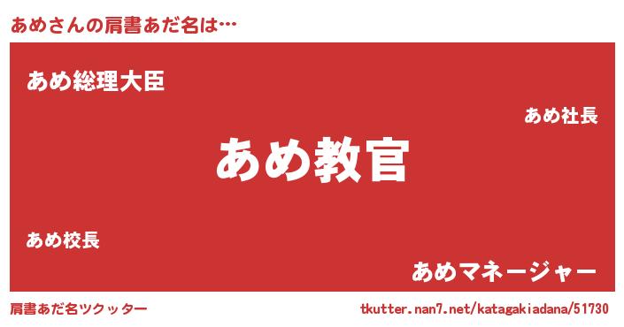 | 男性向けラノベタイトル風あだ名 | 『魔弾の王とあめ』『はたらくあめさま!』 |