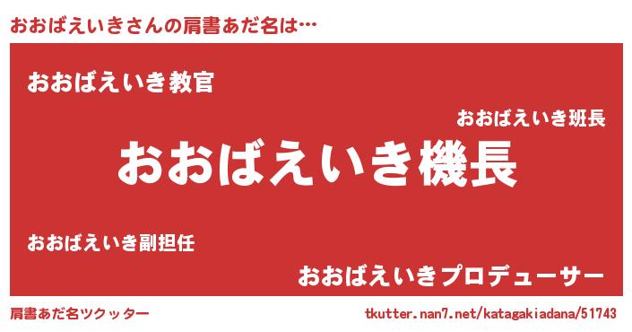 | 意味不明あだ名 | 『住所不定無職おおばえいき(79歳)』 |