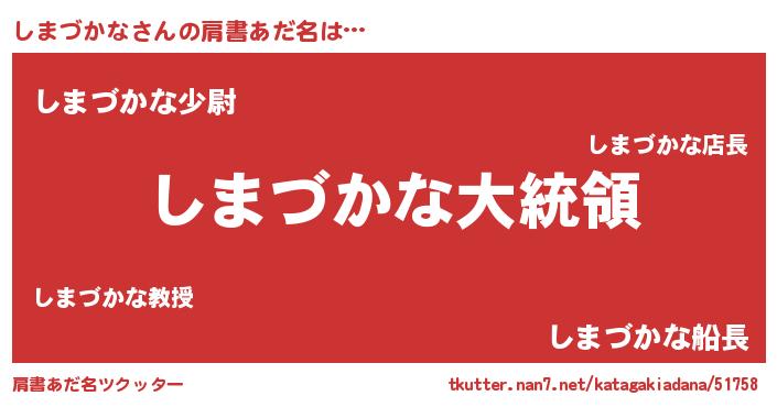 | 意味不明あだ名 | 『しまづかなフォーエバー』 |