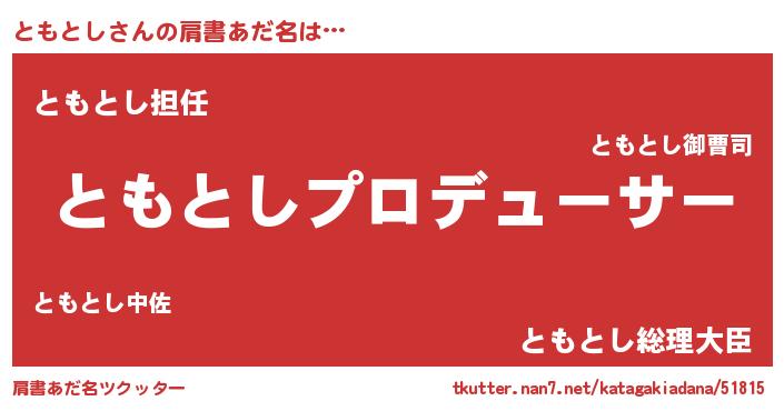 | ヘコむあだ名 | 『ともとし(遠い目)』『レバニラ』 |