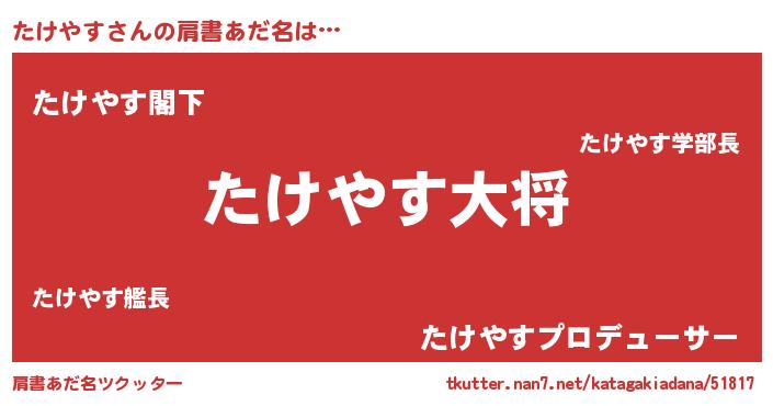 | ヒーロー風カッコイイあだ名 | 『最強戦士タケヤス』『愛の使者たけやす』 |