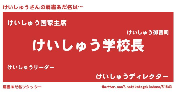 | ヒーロー風カッコイイあだ名 | 『天空の使者けいしゅう』『魔戒騎士ケイ』 |