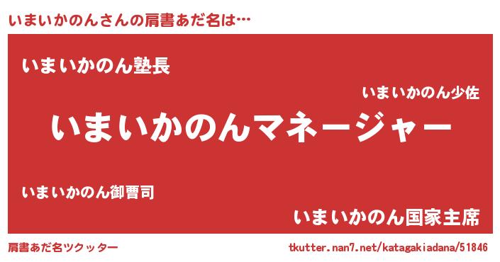 | 意味不明あだ名 | 『とにかく怪しいいまいかのん』 |