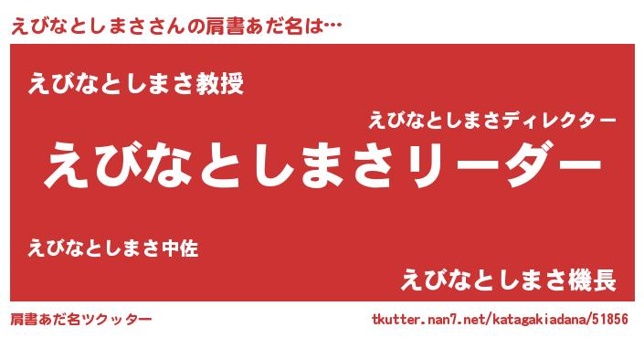 | 意味不明あだ名 | 『とにかく怪しいえびなとしまさ』 |