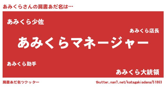 | 欧米人風あだ名 | 『アンジェラ・あみくら』 |
