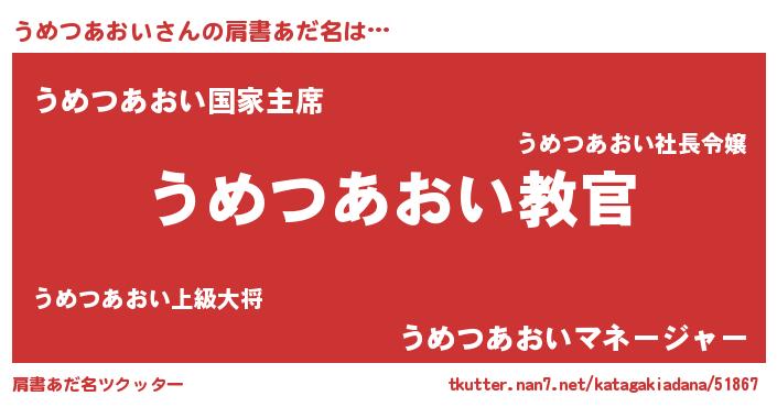 | 意味不明あだ名 | 『住所不定無職うめつあおい(47歳)』 |