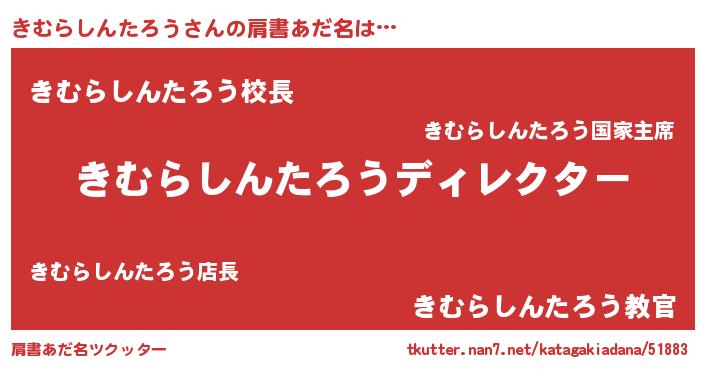 | 男性向けラノベタイトル風あだ名 | 『きむらしんたろうに滅ぼされるだけの簡単なお仕事です』 |