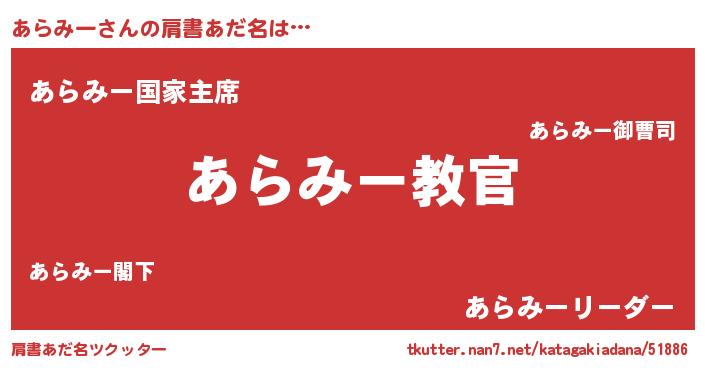 | 意味不明あだ名 | 『住所不定無職あらみー(13歳)』 |