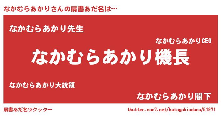 | 男性向けラノベタイトル風あだ名 | 『うちのなかむらあかりが世界を掌握している!』 |