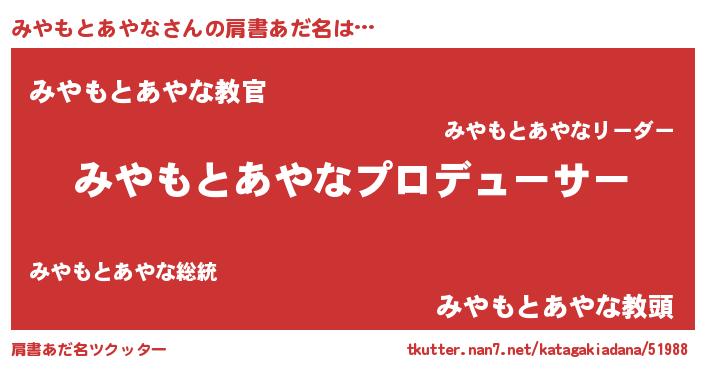 | ヘコむあだ名 | 『みやもとあやな(遠い目)』『みやっちょ』 |