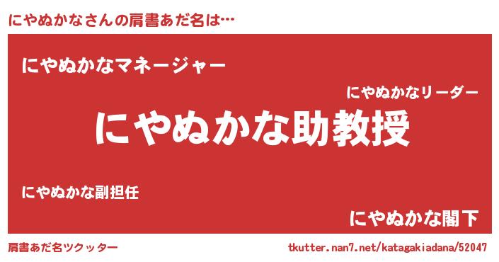 | ヘコむあだ名 | 『にや太郎』『にやぬかな(笑)』 |