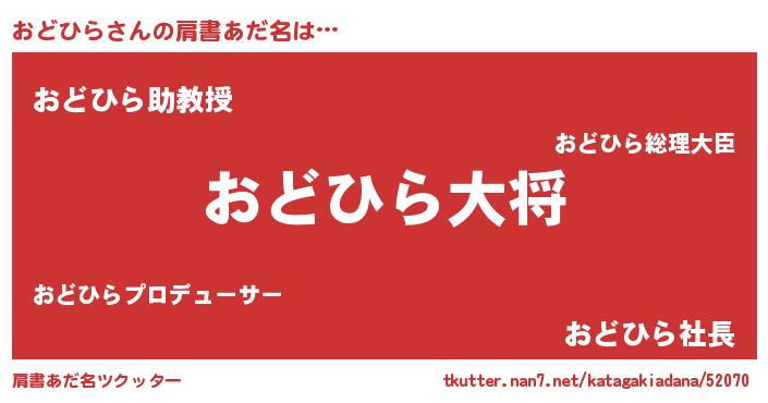 | 男性向けラノベタイトル風あだ名 | 『おどひら~年齢イコール彼女いない歴の魔法使い~』 |
