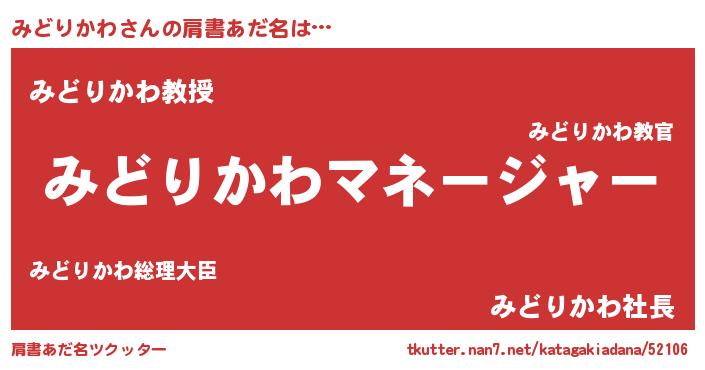 | 男性向けラノベタイトル風あだ名 | 『はたらくみどりかわさま!』 |