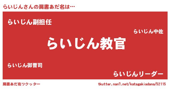 | 男性向けラノベタイトル風あだ名 | 『この素晴らしい世界にらいじんを!』 |