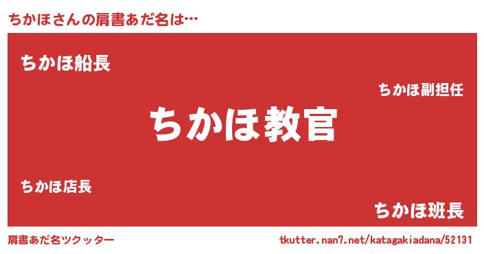 | 男性向けラノベタイトル風あだ名 | 『この素晴らしい世界にちかほを!』 |