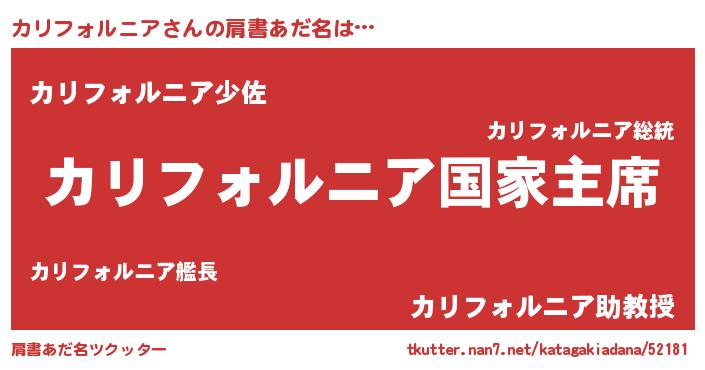 | 女子向けラノベタイトル風あだ名 | 『カリフォルニアの雑貨屋さん』 |