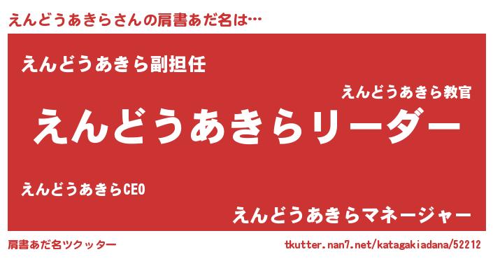 | 男性向けラノベタイトル風あだ名 | 『ダンジョンにえんどうあきらを求めるのは間違っているだろうか』 |