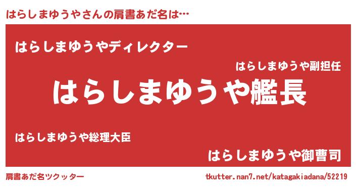 | ヘコむあだ名 | 『はらふぇ~』『はらしまゆうや(爆)』 |