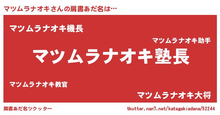 | 意味不明あだ名 | 『とにかく怪しいマツムラナオキ』 |