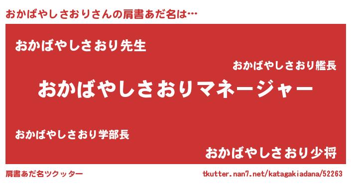 | 男性向けラノベタイトル風あだ名 | 『はたらくおかばやしさおりさま!』 |