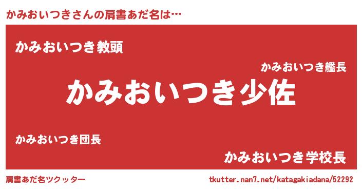 | 女子向けラノベタイトル風あだ名 | 『かみおいつきの玉の輿計画!』 |