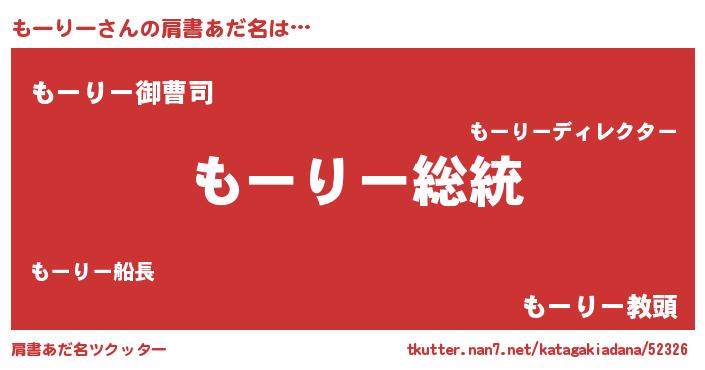 | 女子向けラノベタイトル風あだ名 | 『もーりーなんてお断りですっ。』 |