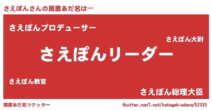 | 意味不明あだ名 | 『とにかく怪しいさえぽん』 |
