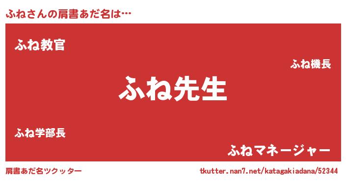| ヘコむあだ名 | 『ふね(小並感)』『ふねぷりん』 |