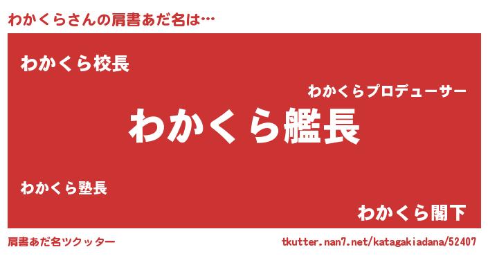 | ヘコむあだ名 | 『わかくら(爆)』『わかっ子』『牛乳』 |