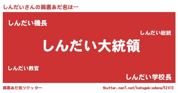 | 意味不明あだ名 | 『しんだいフォーエバー』『自称しんだい』 |