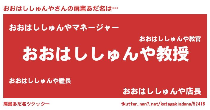 | 男性向けラノベタイトル風あだ名 | 『おまえをオタクにしてやるから、俺をおおはししゅんやにしてくれ! 』 |