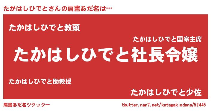 | 男性向けラノベタイトル風あだ名 | 『たかはしひでとの憂鬱』 |
