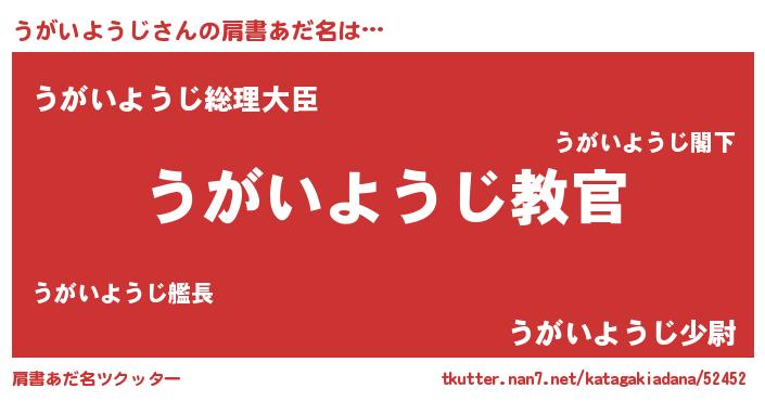 | 男性向けラノベタイトル風あだ名 | 『この素晴らしい世界にうがいようじを!』 |