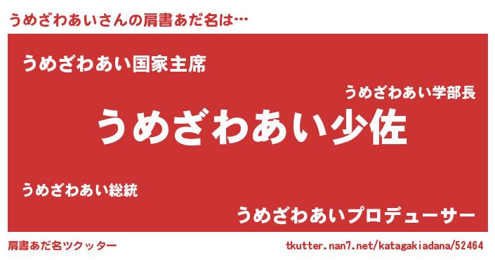 | ポケモン風あだ名 | 『ウメキング』『ウメザダネ』 |
