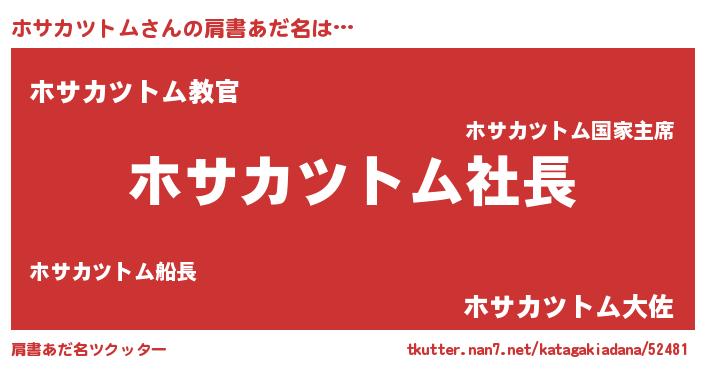 | 男性向けラノベタイトル風あだ名 | 『ホサカツトムアートオンライン』 |
