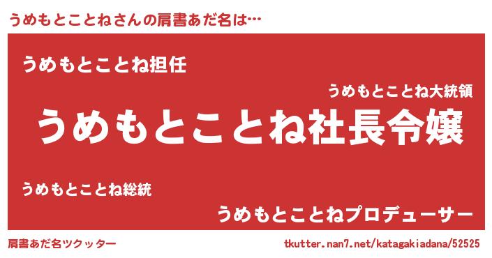 | 胡散臭い通販商品みたいなあだ名 | 『モテモテ間違いなし霊験あらたかなお札…その名も「うめもとことね」』 |