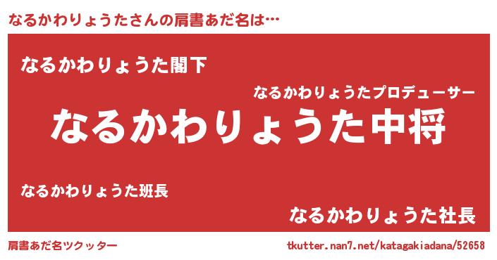 | 男性向けラノベタイトル風あだ名 | 『ナルカワリョウタスレイヤー』 |