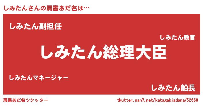 | ヒーロー風カッコイイあだ名 | 『ウルトラしみたんマン』『ネオシミタン』 |