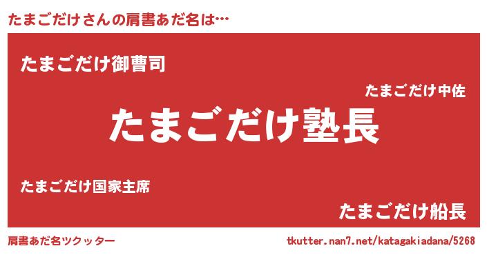 | ヒーロー風カッコイイあだ名 | 『魔戒騎士タマ』『スーパータマゴダケ』 |