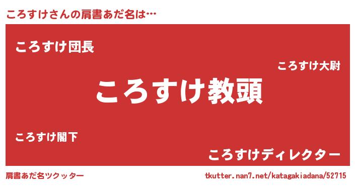 | 男性向けラノベタイトル風あだ名 | 『ころすけという概念が存在しない退屈な世界 』 |