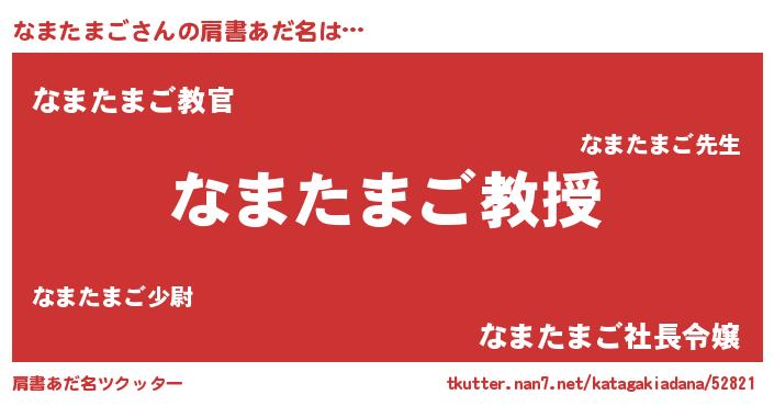| ヒーロー風カッコイイあだ名 | 『天空の使者なまたまご』『仮面ナマダー』 |