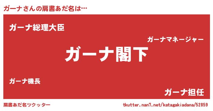 | ヘコむあだ名 | 『なまこ酢』『ガーナ(笑)』『ガーを』 |