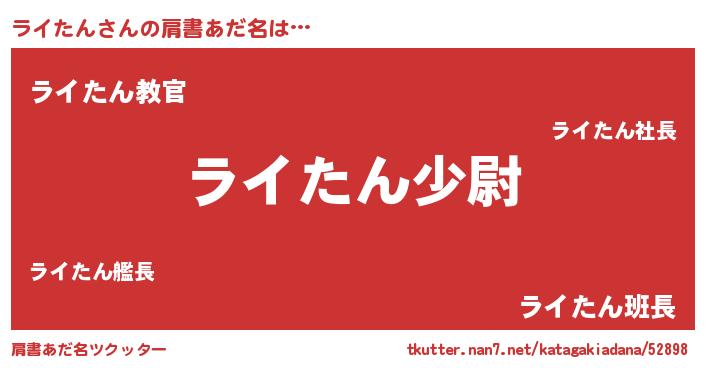 | 男性向けラノベタイトル風あだ名 | 『転生したらライたんだった件』 |