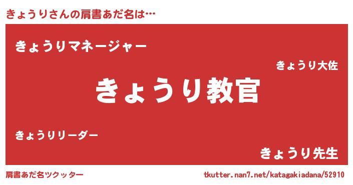| 意味不明あだ名 | 『住所不定無職きょうり(13歳)』 |