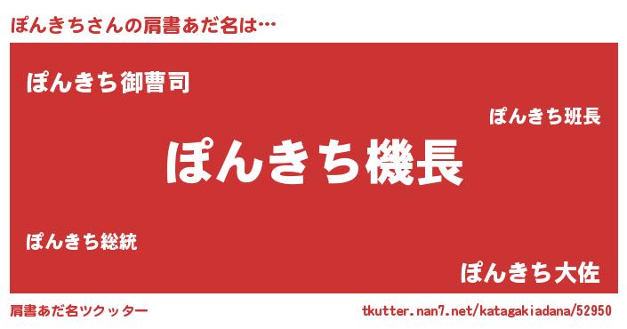 | 男性向けラノベタイトル風あだ名 | 『うちのぽんきちが世界を掌握している!』 |